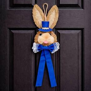 Pendente Cabeça Coelho Com Laço Decoração Páscoa Palha 40cm Azul