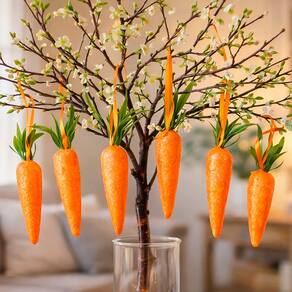 4x Pacotes com 6 pendentes cenouras de páscoa 14cm