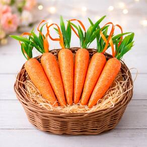 Kit de pendentes em formato de cenoura, ideal para deixar a decoração de Páscoa mais alegre e temática. Perfeito para usar em árvores decorativas, guirlandas, portas, mesas, cestas ou composições criativas em ambientes internos