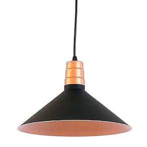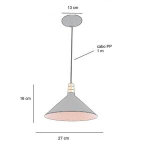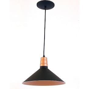 Pendente Chapéu Médio, 1 lâmpada, referência 2732, cor preto/cobre. Seu design moderno permite a utilização deste produto em diversos ambientes internos como para quarto, sala de estar e de jantar, cozinha, banheiro, lavanderia, cabeceira de cama, espaço gourmet, salão de festas, área de serviço, escritório, comércio e varanda. Pode ser utilizado também em ambientes externos, desde que fique ao abrigo do sol, da chuva e da umidade. Informações Técnicas: Cor: Preto/Cobre - Dimensões do produto: 16 cm altura - 13 cm diâmetro canopla – 27 cm de comprimento - Cabo PP 1m. Tipo de Soquete: E27 - BIVOLT (110/220V). Quantidade de Lâmpadas: 01 LED ou PAR20 - Potência máxima 20W - Não acompanha Lâmpada - Não possui LED integrado - Não necessita montagem - Fácil instalação. Material: Alumínio - Garantia 90 dias após emissão da nota ao consumidor Acabamento: Alumínio Acompanha Lâmpada: Não Altura: 116 Ambiente de Iluminação: Interno Ambiente Principal: Sala de Jantar Comprimento: 116 Comprimento do Cabo: 100 Cor: Preto Cor do Acabamento: Cobre Cor do Produto: Preto Formato: Cúpula Largura: 27 Material Principal: Alumínio Origem do Produto: Nacional Peso: 0.4 Profundidade: 27 Quantidade de Itens: 1 Quantidade de Lâmpadas: 1