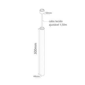 Com medidas de largura de 4cm e comprimento de 30cm, esse pendente conta com um cabo tecido ajustável na altura de 1,50m, permitindo que você o ajuste de acordo com a necessidade do espaço.
