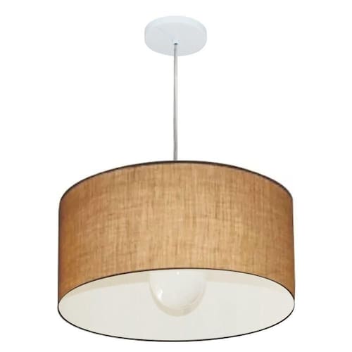 Pendente Cilíndrico MJ-4203 para Mesa de Jantar e Estar Bivolt com Cúpula em Tecido Branco Vivare Brasil Iluminação