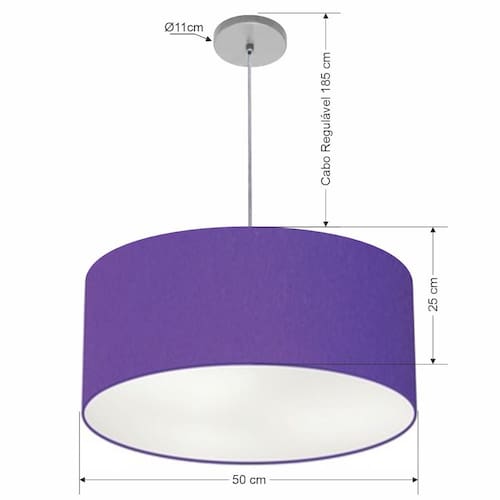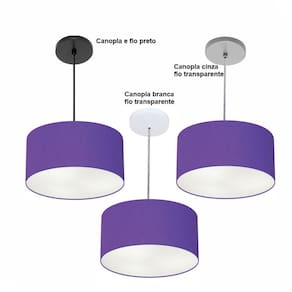 Pendente Cilíndrico Vivare Free Lux Md-4386 Cúpula em Tecido - Cor: Roxo | Cor da Canopla: Canopla cinza e fio cristal