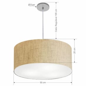 Pendente Cilíndrico Vivare Free Lux Md-4386 Cúpula em Tecido