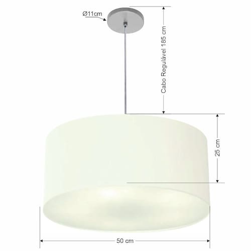 Pendente Cilíndrico Vivare Free Lux Md-4386 Cúpula em Tecido