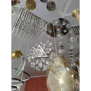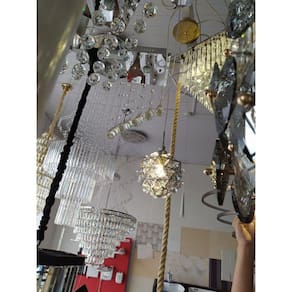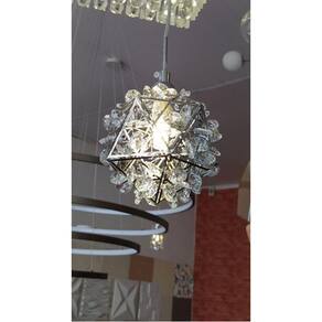 Pendente cromado com Cristais transparentes. 12 cm de diâmetro e altura ajustável. Capacidade para 1 lâmpada G9