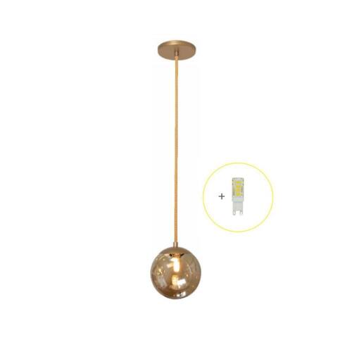 Pendente Dourado Para Bancada Cozinha Cabeceira De Cama + Led Pendente Globo Jabuticaba DouradoMaterial: Metal e Vidro Medidas: Vidro 13cm x Base 12cmCabo: Fio em Tecido Dourado Ajustável na Instalação 1,50mCor: DouradoLâmpada: 1 Lâmpada Led G9 5w Luz Quente Amarelada Inclusa Voltagem: BivoltItens Inclusos:1 Pendente Dourado1 Vidro1 Lâmpada Led G9