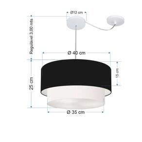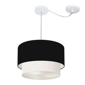 Pendente Duplo Cilíndrico Com Desvio de Centro Vivare Md-4364 Cúpula em Tecido 40x35cm - Bivolt - Cor: Preto-branco | Voltagem: 127/220V