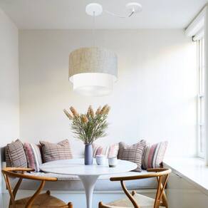 Pendente Com Desvio de Centro Indicado para decoração área interna, como mesas, sala de estar, sala de jantar, suíte, quartos, corredor, hall, mezanino, escadas, churrasqueira, lareira, área de circulação, lojas, comércios, restaurante, varanda, balcão.