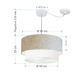 Pendente Duplo Cilíndrico Com Desvio de Centro Vivare Md-4366 Cúpula em Tecido 50x40cm - Bivolt - Cor: Rustico-bege-branco | Voltagem: 127/220V