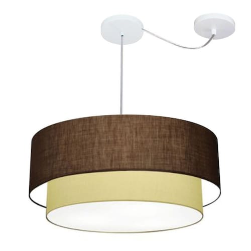 Pendente Duplo Cilíndrico Com Desvio de Centro Vivare Md-4368 Cúpula em Tecido 60x50cm - Bivolt - Cor: Café-algodão-crú | Voltagem: 127/220V