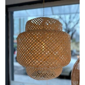 Pendente fibra natural bambu bali 40cm Altura da cúpula: 50 cm Diâmetro total da cúpula: 40 cm Comprimento do fio: 1,5 cm Base ou canopla que fixa no teto: 11 cm Marca: Não Informado
