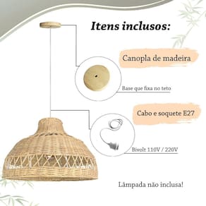 - Materiais: Cúpula: Fibras de rattan e estrutura de metal Canopla: Madeira