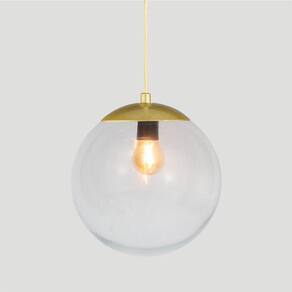 Pendente Globo Esfera De Vidro Cristal 20cm - Ouro Inspirado no Design Vintage o pendente Globo transmite uma decoração sofisticada e dá um toque divertido ao espaço. Seu design minimalista com esfera de vidro tira qualquer sala da . Uma peça diferenciada e muito elegante que fará toda a diferença no seu ambiente. Ideal para iluminações de centro de mesa, balcões, mesa de jogos entre outros. Descrição Técnica: - Modelo: GLOBO 20cm - Acabamento do Vidro: CRISTAL - Acabamento da Base: COR OURO - Quantidade de soquetes: 1 - Material: Vidro e Alumínio - Tamanho do Globo (LxAxP): 20cm x 20cm x 20cm - Cabo Revestido em tecido: 1m (regulável) - Soquete: E27 - Bivolt: Sim - Canopla: Em metal com regulador ****
