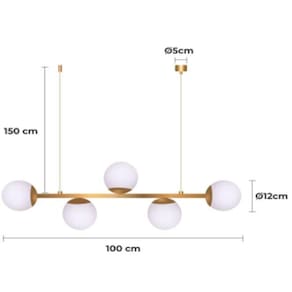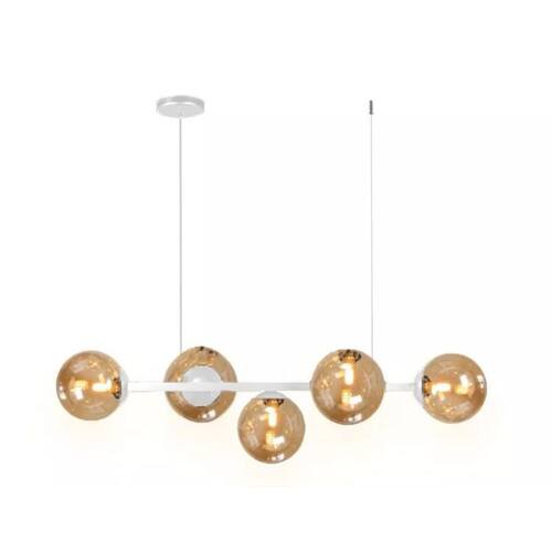 Soquete: 5 x G9 Cor: Branco Dimensões: 100 C x 24 A x 24 L cm Cabo ajustável de até 1,5m Bivolt Material: Alumínio e Vidro Globo: 12cm - Âmbar Marca: All Lux