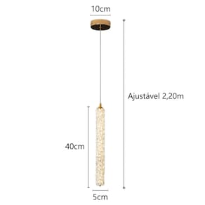 O Pendente Led Decor da Cinderella é ideal para iluminar e decorar diversos ambientes interiores, Quartos, Cabeceira de Cama, Passa Prato, Bancada, Mesa, Aparador, Balcão, Lavabo. A combinação perfeita do acabamento e a luz do Led projetada nos cristais, dando um incrível visual brilhante e moderno, trazendo elegancia e sofisticação. Venha se surpreender com essa grande Joia da Iluminação. Materiais: Metal e Cristal Cor: Dourado Escovado Cristal: Castanha 14mm Cristal Medidas: 40cm x 5cm Altura Ajustável na Instalação 2,20m Base do Teto: 10cm Led Integrado: Luz Amarelada 3.200k Potência: 24w Lumens: 2496lm Voltagem: Bivolt Marca: Cinderella Modelo: CD240461 Produto completo para Instalação Itens Inclusos: 1 Luminária Pendente LED Marca: Não Informado