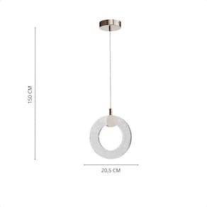 Pendente Led Moderno Taschibra Ravi Luz Quente 3000K Bivolt Características Gerais do Produto: Benefícios do produto: Sofisticado e moderno, LED de alto brilho, durabilidade estendida, pintura automotiva, possibilita regulagem na altura, economize até 85% de energia. Dimensões AxLxP CM : 150 X 20,5 X 15 Formato: Circular Cor da luz: 3000K Quente Produzido em: Metal, Acrílico e Componentes Eletrônicos Voltagem: Bivolt em 110V e 220V Alimentação: Energia elétrica Cor acabamento: Dourado Potência: 16W Fluxo luminoso: Decorativo Cor do cabo: Transparente IRC: 80 Para uso em soquete: LED já integrado, não se utiliza soquete Comprimento do cabo: 80 cm, altura regulável : 1 ano junto ao fabricante Aplicação: Sobrepor Vida útil: 15.000 horas Grau de proteção: IP20 Acompanha o produto: 01 Lustre Completo 01 Kit Instalação 01 Manual de Instalação : 1 ano junto ao fabricante Marca: Não Informado