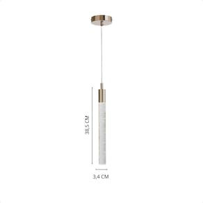 Pendente Led Moderno Taschibra Zaira Luz Quente 3000K Bivolt Características Gerais do Produto: Benefícios do produto: Sofisticado e moderno, LED de alto brilho, durabilidade estendida, pintura automotiva, possibilita regulagem na altura, economize até 85% de energia. Dimensões AxLxP CM : 38,5 X 3,4 X 3,4 Formato: Tubular Cor da luz: 3000K Quente Produzido em: Plásticos de Engenharia, Metal e Componentes Elétricos Voltagem: Bivolt em 110V e 220V Alimentação: Energia elétrica Cor acabamento: Dourado Potência: 5W Fluxo luminoso: Decorativo Cor do cabo: Transparente IRC: 80 Para uso em soquete: LED já integrado, não se utiliza soquete Comprimento do cabo: 90 cm, altura regulável : 1 ano junto ao fabricante Aplicação: Sobrepor Vida útil: 15.000 horas Grau de proteção: IP20 Acompanha o produto: 01 Lustre Completo 01 Kit Instalação 01 Manual de Instalação : 1 ano junto ao fabricante Marca: Não Informado Ean: 7897079092509