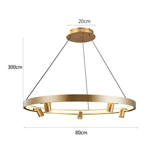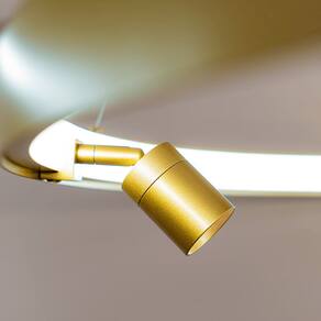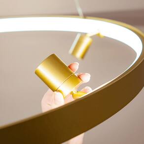 Cód: 2542Pendente Lilla Redondo Alumínio Dourado 80cm Led 52W 3000KPotência: 5*3W + 37WTemperatura de cor: 3000K (branco quente) Material: Alumínio e siliconeCor: Dourado foscoComprimento do cabo: 300cmLargura Total: 80cmCanopla: Ø20cm