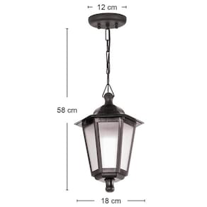 Garantia: 90 dias / Peso: 0,660kg / Cor predominante: preto / Ref: 7898505471547; Dimensões totais do pendente: 18cm (C) x 18cm (L) x 58cm (A); Conteúdo: 1 pendente injetado de teto; Soquete: E27, até 20W; Não acompanha lâmpada. Voltagem 127/220V~ Bivolt; Instalação: Teto; Material: plástico, alumínio; Modelo: Grega.