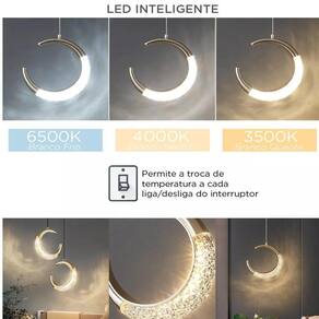 O Pendente Lua Minguante é ideal para decorar quarto, lavabos, seu design traz uma essência delicada e sofisticada. Com seu LED Inteligente é possível alternar eu tom de temperatura a cada liga e desliga do interruptor, podendo transformar seu ambiente conforme a necessidade do ambiente/momento.Especificações: Potência: 7W Temperatura de cor: 3500K Branco Quente, 4000K - Branco Neutro e 6500K Branco Frio Cor: Dourado Voltagem: Bivolt Led Driver Integrado Material: Acrílico e Metal Cabo Silicone AjustávelDimensões: Diâmetro: 20cm Largura: 4cm Fio: 95cm Ajustável Canopla: 10cm Peso: 469gAcompanha: 01 Pendente Lua minguanteGARANTIA: Oferecemos garantia de 90 dias para todos os produtos. Havendo qualquer anormalidade com a peça durante esse período, nos prontificaremos a substituí-la o quanto antes, basta o cliente entrar em contato com nossa central de atendimento. Foto Ilustrativa Não nos responsabilizamos pelo mau uso do produto.