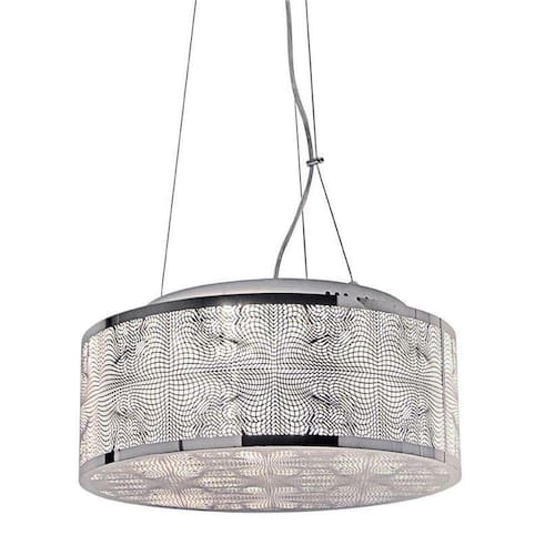 Pendente lustre apolo inox redondo para led diâmetro 60 cm Pendente lustre apolo em inox cromado, com design arrojado e super moderno pelos cortes retos e pelo desenho recortado a laser na lamina de inox, dentro possui uma película de pvc brilhante que proporciona um efeito claro e aconchegante, luminária leve e fácil de instalar é indicada para salas, quartos, corredores, hall de entrada e escritórios. Seus materiais são pvc e metal. Comporta 5 lâmpadas de soquete e27 de led com potência de 20w não inclusas . Pendente apolo cromado com cúpula de inox recortado a laser e película de pvc interna brilhante. Utiliza 05x led-e27. Não acompanha lâmpadas. Produto montado. Medidas: l 60 - p 60 - a 15 cm. Bivolt.