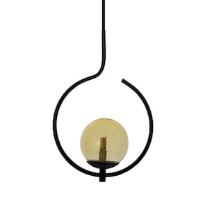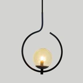 Pendente Lustre On Loop Preto Com Globo De Vidro Preto/vidro Ambar Lustre Pendente ON LOOP, design minimalista ao seu estilo. Descrição Técnica: - Modelo: On Loop - Acabamento: Pintura Térmica - Material: Aluminio e vidro - Tamanho (LxA): 25 cm x 36 cm - Cabo: 70 cm(regulável) - Soquete: Padrão G9 - Bivolt: Sim - Canopla: 12 cm