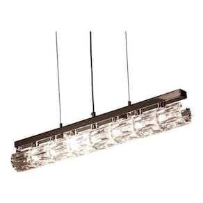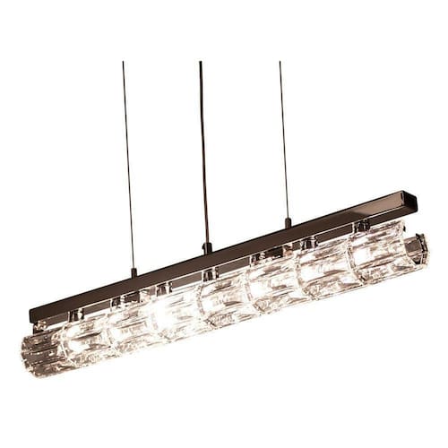 Pendente lustre réia de cristal para led 61 x 11 cm Pendente lustre de cristal réia com design contemporâneo faz com que seja indicado para compor ambientes internos. Ideal para dormitório, sala de estar, sala de jantar e hall de entrada. Seus materiais são em metal cromado e cristal com acabamento em cor transparente. Comporta 7 lâmpadas de soquete g9 de led com potência de 7w não inclusas . Pendente réia em metal cromado com cristais, necessita de 7 x led-g9. Não acompanha lâmpadas. Produto montado. Medidas: l 61 - p 11 - a 10 cm. Bivolt.