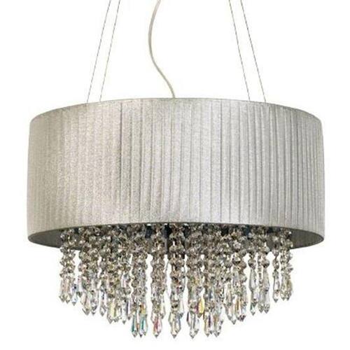 Pendente lustre silk prata com cristal para led 38 cm Pendente lustre silk com tecido e cristal. Com design contemporâneo faz com que seja indicado para compor ambientes internos. Ideal para escada, dormitório, sala de estar, sala de jantar e lavabo, closet, hall de entrada. Seus materiais são em metal cromado, tecido e cristal com acabamento em cor transparente. Comporta 3 lâmpadas de soquete e27 de led mais 1 x e14 de led não inclusas . Pendente silk em tecido prata plissado, com armação cromada e cristais, com regulagem de altura. 3 x led e27 + 1x led e14. Produto semi-montado. Medidas: d 38 cm - h 30 cm. Bivolt x005fx000d