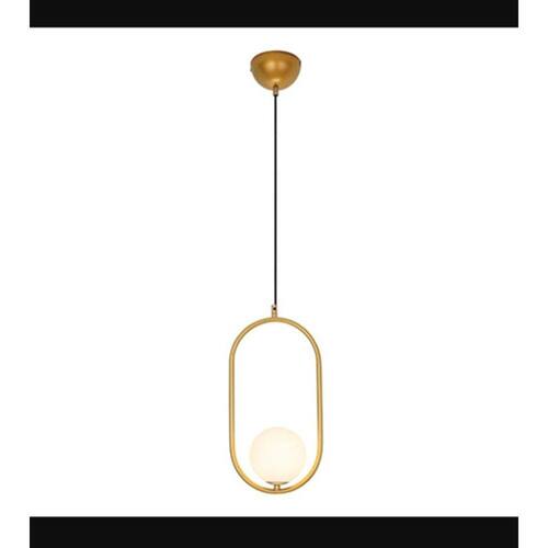 Pendente Rio com estrutura em metal dourado, para 1 lâmpada com cúpula de vidro branco.