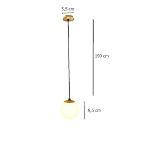 Com medidas de 9,5 cm de diâmetro e uma altura total de 200 cm, este pendente pode ser ajustado de acordo com as suas necessidades, graças ao seu comprimento de fio ajustável de 190 cm. A base ou canopla que fixa no teto possui um diâmetro de 5,5 cm.
