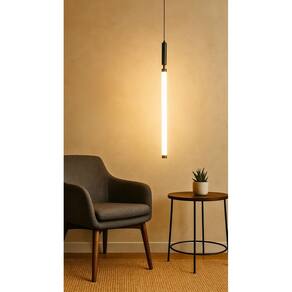 Com design minimalista e elegante, o pendente tubular preto fosco é ideal para quem busca um toque moderno e sofisticado na decoração. Sua iluminação em branco-quente (3200K) cria um ambiente acolhedor e confortável, perfeito para destacar salas, quartos ou áreas gourmet.