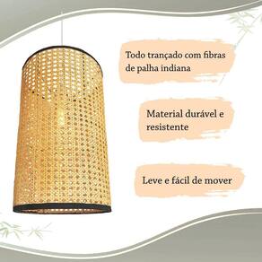 - Materiais: Cúpula: Fibras de palha indiana rattan e estrutura de metal Canopla: Madeira