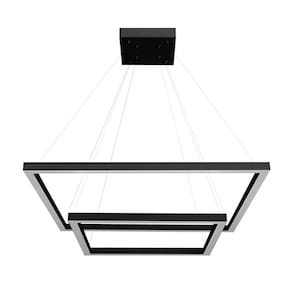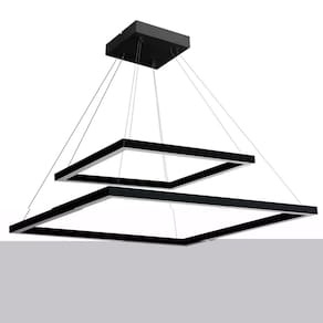 Composição imponente e contemporânea, este pendente com dois módulos quadrados em alturas diferentes cria um efeito visual moderno e sofisticado. O contraste do acabamento preto com o desenho geométrico vazado valoriza projetos atuais, trazendo identidade e elegância ao ambiente.