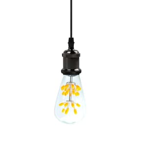 materiais do produto: - soquete: metal por fora e por dentro e27 4a 250v t210 - base para fixação no teto: metal - fio com acabamento em tecido - tampa: metal - lâmpada: filamento led vintage retro e27 pêra luz amarela