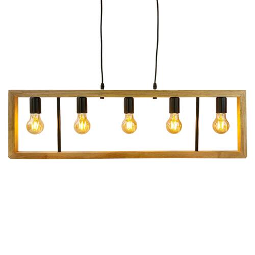 Com design marcante e acabamento natural, o pendente rústico retangular une o charme da madeira com a modernidade do metal. Ideal para quem busca uma iluminação acolhedora e sofisticada, é perfeito para salas de jantar, cozinhas gourmet e ambientes com estilo industrial ou contemporâneo. Suas cinco lâmpadas E27 proporcionam uma iluminação ampla e agradável.