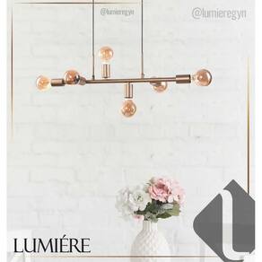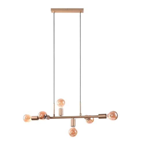 Seu design industrial faz com que seja indicado para compor ambientes internos. Ideal para dormitório, sala de estar, sala de jantar e hall de entrada. Seu material é em metal com acabamento em pintura Dourado - Material: Metal - Acabamento: Dourado - Lâmpada: E27 - Quantidade de lâmpadas: 6 - Potência máxima: 40W - Voltagem: 127V-220V - Medidas: 22 x 70 x 16,5 cm - Comprimento do fio: 150cm