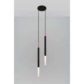 Tudo para iluminar seu ambiente com muito charme Perfeito para todos os ambientes Modelo: pendente Cor es : preto/cobre Material: alumínio com policarbonato Canopla de teto: alumínio 15cm Cabo de alimentação regulável: 1,5m Luminária: 2 soquete g9 Número de lâmpadas: 2 lâmpadas não inclusas Voltagem: 127v/220v Medida: 53 x 2,5 cm Peso líquido: 0,6 kg Conteúdo da embalagem: 1 luminária de teto