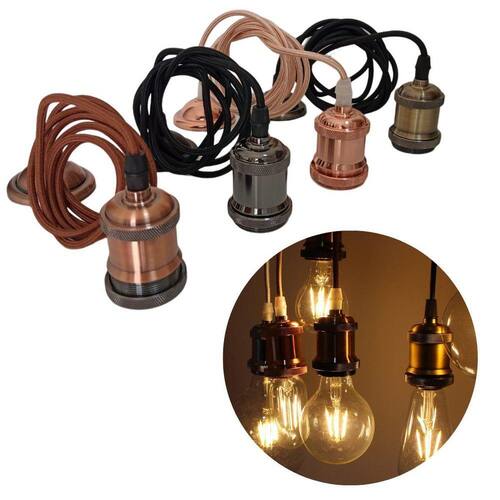 Pendente de teto rústico retrô vintage de metal 2m com soquete bocal e27 com fio cabo em tecido com tampa canopla Cor: bronze O pendente retro de teto com fio, traz estilo para sua casa, beleza e aconchego. Sugerimos a utilização de lâmpadas estilo vintage de led ou filamento de carbono, com temperatura de cor amarela para elegância na decoração de sua iluminação. Especificações do produto- soquete: metal por fora e por dentro e27 4a 250v t210- base para fixação no teto: metal- fio com acabamento em tecido- tampa: metal- tipo de fiação: fio pp - voltagem: bivolt - tampa com ajustador de altura - fio combinando com a cor do pendente - fácil de instalar - soquete com rosca inferior para adaptação em outras luminárias- peso total do produto: 188 gramas Medidas do produto:- medida do pendente de ponta a ponta: 2m- diâmetro da canopla: 6,7cm- medidas do bocal: 6,7cm a x 5cm l Itens inclusos:- 1 pendente retro com fio e canopla tampa - 1 kit instalação contendo buchas e parafusos Observação: este produto não acompanha nenhuma lâmpada