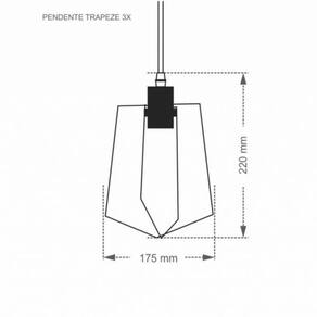 Ficha técnica - Medidas: C: 17,50cm L: 17,50cm A: 22cm - Peso: 0,70kg - Modelo: Pendente Trapeze - Voltagem: 100 á 250V - Cor: Não se aplica - Potência Máxima: 120W - Medidas Embalado: C: 25cm L: 80cm A: 25cm - Marca: Taschibra - Garantia em Meses: 3 - Peso Embalado: 0,90kg - Tipo de Soquete: E27 - Sobre a garantia: Garantia contra defeitos de fabricação juntamente com o fabricante da marca.