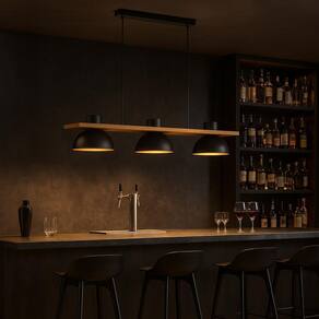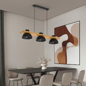 Pendente triplo moderno em madeira e metal preto 90cm Pendente moderno triplo em madeira e metal - design sofisticado para sala de jantar e cozinha Não acompanha as lâmpadas Transforme seu ambiente com este lustre pendente moderno, que une design elegante e iluminação funcional. Com acabamento em metal preto fosco e detalhe em madeira natural, ele traz um toque contemporâneo e aconchegante para sua casa. Características: Estrutura em madeira de alta qualidade e cúpulas metálicas Altura ajustável até 1,20m Largura total: 90cm Compatível com lâmpadas e27 não inclusas Ideal para mesas de jantar, cozinhas, bares e ambientes sofisticados destaques: Estilo minimalista e moderno Iluminação direcionada e aconchegante Combinação perfeita de preto e madeira para decoração contemporânea Perfeito para quem busca elegância, funcionalidade e um toque de sofisticação no ambiente. O produto é novo Sim, todos os produtos são novos. Caso o produto não supra minha necessidade posso devolver ou trocar O produto tem Sim, todos os produtos têm . Se ainda houver alguma dúvida estamos a disposição para responder de segunda-feira a sexta-feira das 08:00 às 17:30. Marca: Não Informado