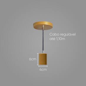 Dar uma cara moderna a um ambiente não é uma tarefa complexa. A mudança pode começar por um passo simples, como por exemplo, apostar em pendentes. O acessório que permite o encaixe da lâmpada, além de útil, pode ser uma bela peça decorativa.Um toque de beleza que valoriza sua casa.ESPECIFICAÇÕES TÉCNICAS DO PENDENTE:- Modelo: Pendente Cilindro ST458- Cor: Dourado- Material: 100% Alumínio- Voltagem: Bivolt- Soquete: 01 modelo E27- Utiliza 1 lâmpada de Rosca Comum- Dimensões: altura 6 cm x diâmetro 4 cm- Comprimento do cabo: 110 cm (regulável)- Acompanha Canopla: Acabamento para o Teto- Diâmetro da Canopla: 12cmITENS INCLUSOS:- 01 Pendentes Soquete Cilindro ST458- Parafusos para instalaçãoNÃO ACOMPANHA LÂMPADA