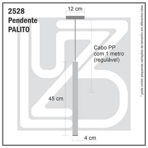 Pendente Tubo Palito 45cm - Preto Pendente Palito Com Design Slim este pendente é simples e lindo ao mesmo tempo. Proporciona uma luz focada e suave. Com cabo PP 1 metro, regulador e canopla em metal esta luminária é uma tendência na iluminação. Descrição Técnica: - Modelo: PALITO - Acabamento do corpo: PRETO FOSCO - Material: Alumínio Usinado - Tamanho (LxAxP): 4cm x 45cm x 4cm - Cabo: PP com 1m (regulável) - Cor do Cabo: Preto - Soquete: GU 10 - Bivolt: Sim - Canopla: Em metal com 12cm, modelo plano e trava cabo regulador do cabo. Acabamento preto fosco **Lâmpadas vendidas separadamente**