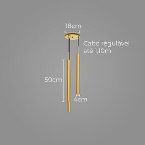 ESPECIFICAÇÕES TÉCNICAS: - Cor: Dourado - Material: Alumínio - Voltagem: Bivolt 110/220V - Soquete: 3x GU10 p/ MR11 (não inclusa) - Dimensões do Tubo: 50 cm de Altura x 4 cm de Diâmetro - Dimensões da Canopla: Diâmetro 18 cm | Furos 8,6 cm - Comprimento do Cabo: Regulável até 110cm - Peso: 800g - Garantia: 12 meses
