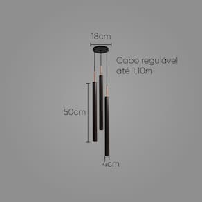 - Dimensões do Tubo: 50 cm de altura x 4 cm de diâmetro