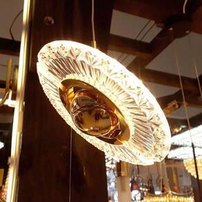 ESPECIFICAÇÕES TÉCNICAS: Estrutura em Alumínio Dourado + Acrílico Transparente. Medidas: 20cm(D) x 20cm(A). Altura máxima do cabo: 100cm. Potência: 6W. Temperatura de cor: 3000K.