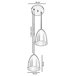 -Alimentação: Bivolt -Tipo de lâmpada: 2 x E-27. (não inclusas) -Peso Aprox. com embalagem: 800 g -Dimensões aprox. do produto 20x14cm (cada pendente) -1 Metro de Fio PP -Soquete de Porcelana -Canopla de Fixação de 18cm de diâmetro.