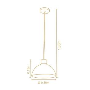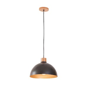 Pendente Viena Ø30cm Preto/Dourado/Madeira 1xE27 - Madelustre -