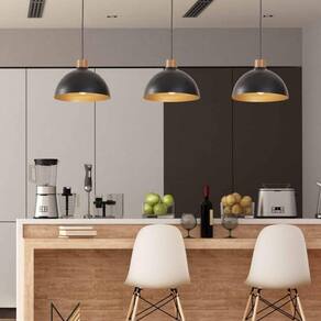 • 1 Pendente Viena Ø30cm Preto/Dourado/Madeira 1xE27