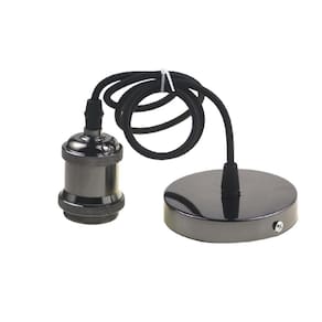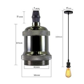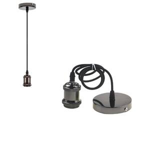 Pendente vintage retrô soquete bocal de metal com fio cabo pp com tampa canopla suporte de teto decorativa cor: preto com cinza pendente retro fio vintage
